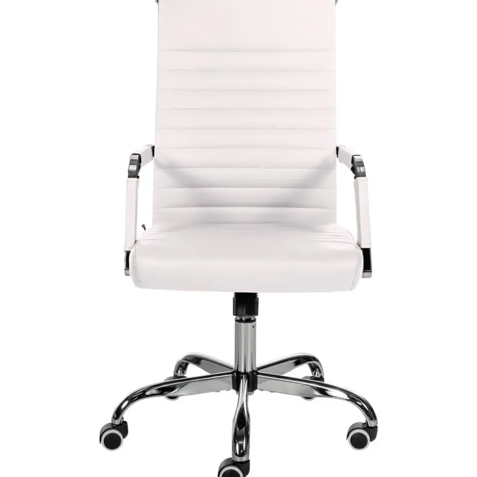 Deze bureaustoel Amadora overtuigt niet alleen met zijn moderne uitstraling, maar ook op het gebied van comfort. De hoogwaardige en onderhoudsvriendelijke kunstlederen bekleding zorgen voor een aangenaam zitervaring, zelfs gedurende meerdere uren. Bovendien is de zithoogte traploos instelbaar en garandeert ergonomisch zitten. Bovendien is de bureaustoel uitgerust met een kantelmechanisme dat meer bewegingsvrijheid biedt. De stabiliteit wordt gegarandeerd door het metalen frame in chroomlook. Met de vijf soepel lopende wielen kunt u zich gemakkelijk en losjes over de vloer verplaatsen. of het nu gaat om harde of zachte ondergrond.