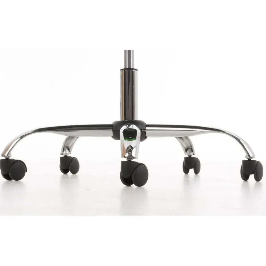 De stoel staat stevig op vijf licht rollende zwenkwielen. Zij het nu een harde of zachte ondergrond, zij rollen vlot en licht.