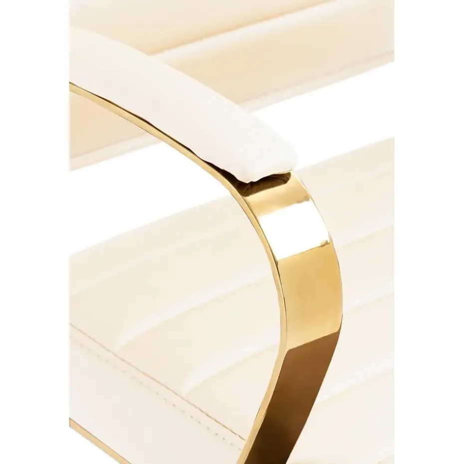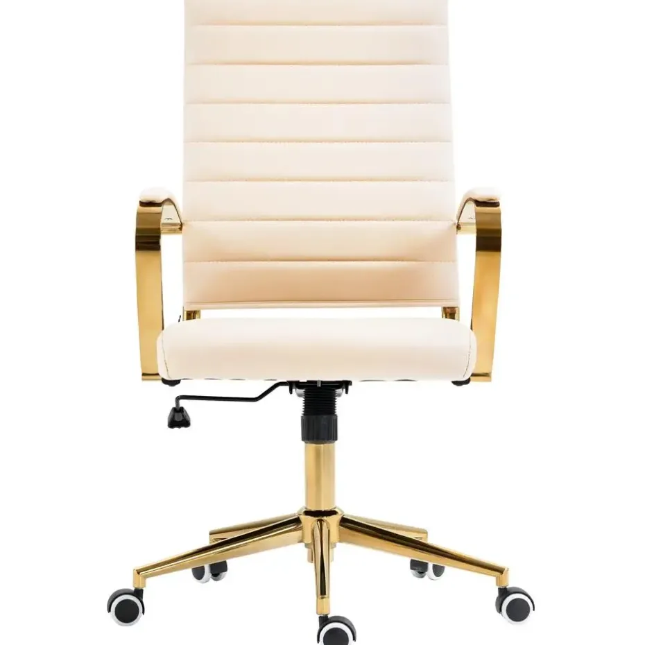 De robuuste constructie zorgt voor een hoge stabiliteit en een maximale belastbaarheid van 136 kg. De stijlvolle gouden look en de rubberen lichtlopende wielen beschermen je vloer en voegen een vleugje elegantie toe aan je kantoor.