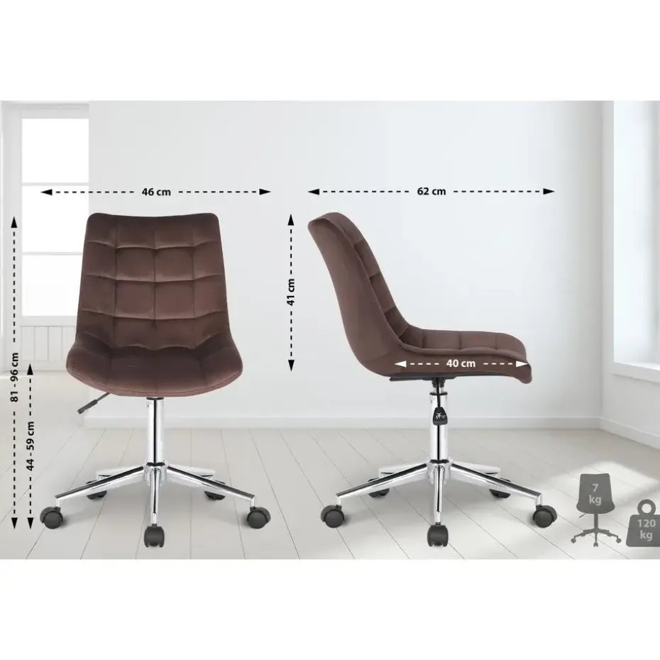 De bureaustoel Medford overtuigt niet alleen door zijn moderne uiterlijk, maar ook op het gebied van comfort kan niemand hem voor de gek houden. De bureaustoel heeft een fluwelen bekleding en is daardoor bijzonder gemakkelijk schoon te maken. Bovendien is de zithoogte traploos instelbaar en garandeert ergonomisch zitten. De stabiliteit wordt gegarandeerd door het metalen frame in chroomlook.