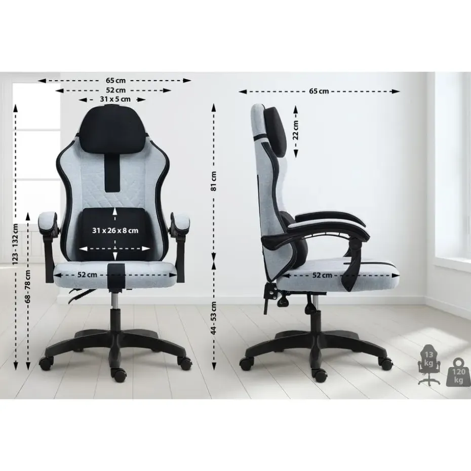 De gamestoel is traploos in hoogte verstelbaar via de hoogwaardige gaslift. Tot slot geeft het extreem robuuste kunststof frame met soepel lopende wielen de bureaustoel een stabiele basis. Het maximale draagvermogen is 120 kg.