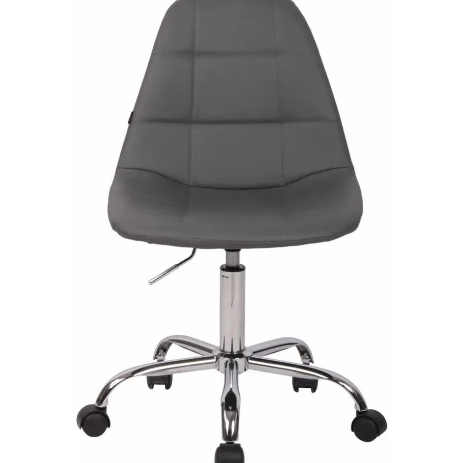 De bureaustoel Reims maakt indruk met zijn comfortabele bekleding en een slank uiterlijk. De rechthoekige decoratieve stiksels en heldere kleuropties maken de bureaustoel Reims een visueel hoogtepunt op elke werkplek. De hoogwaardige zit is bedekt met een kunstlederen bekleding en dankzij een traploos verstelbare zithoogte is een ergonomische zitting gegarandeerd. Hij staat stabiel op vijf lichtgewicht zwenkwielen en een frame van metaal in chroomlook. Het praktische ontwerp maakt het geschikt voor kleinere ruimtes en flexibel in gebruik. Of het nu harde of zachte ondergrond is, u zult altijd gemakkelijk en losjes over de vloer kunnen verplaatsen. De bureaustoel wordt gedemonteerd geleverd.