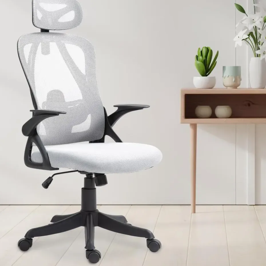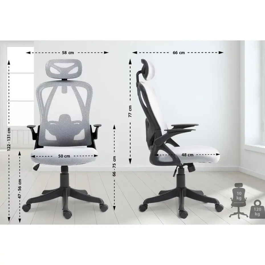 De bureaustoel dankt zijn hoge zitcomfort aan de vele ergonomische functies: De rugleuning heeft een verstelbaar schommelmechanisme, een lendensteun en een hoofdsteun die ook versteld kan worden. De netbespanning over de rugleuning en hoofdsteun is ademend. De armleuningen ontlasten de nek en schouders en kunnen ook worden opgeklapt.