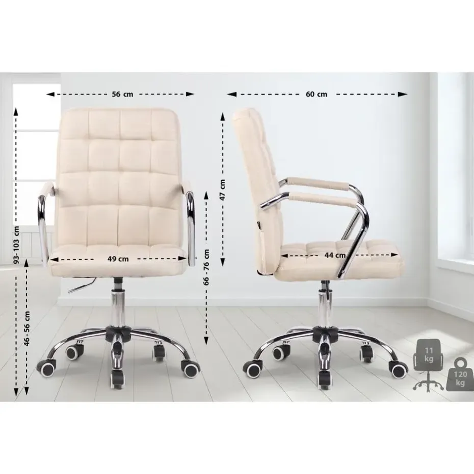 De bureaustoel Terni maakt indruk met zijn moderne vormgeving en biedt een hoog niveau van comfort tijdens het werk dankzij de rugleuning. Deze bureaustoel heeft een zeer hoogwaardige bekleding en is bekleed met kunstleer of stof. Het elegante verchroomde frame en de massief gebogen armleuningen met bekleding geven hem dat extraatje. De zithoogte kan traploos worden ingesteld met de hendel onder de stoel. Dit garandeert een hoog niveau van comfort tijdens het werk over een lange periode. De bureaustoel staat stevig op een metalen frame in chroomlook met vijf licht lopende wielen.