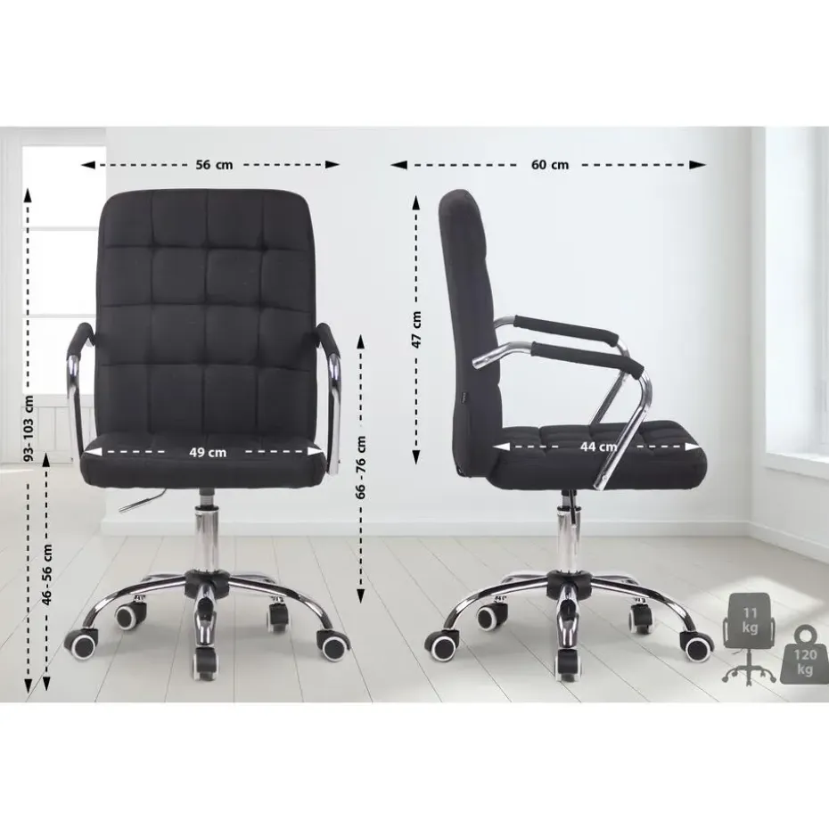 De bureaustoel Terni maakt indruk met zijn moderne vormgeving en biedt een hoog niveau van comfort tijdens het werk dankzij de rugleuning. Deze bureaustoel heeft een zeer hoogwaardige bekleding en is bekleed met kunstleer of stof. Het elegante verchroomde frame en de massief gebogen armleuningen met bekleding geven hem dat extraatje. De zithoogte kan traploos worden ingesteld met de hendel onder de stoel. Dit garandeert een hoog niveau van comfort tijdens het werk over een lange periode. De bureaustoel staat stevig op een metalen frame in chroomlook met vijf licht lopende wielen.