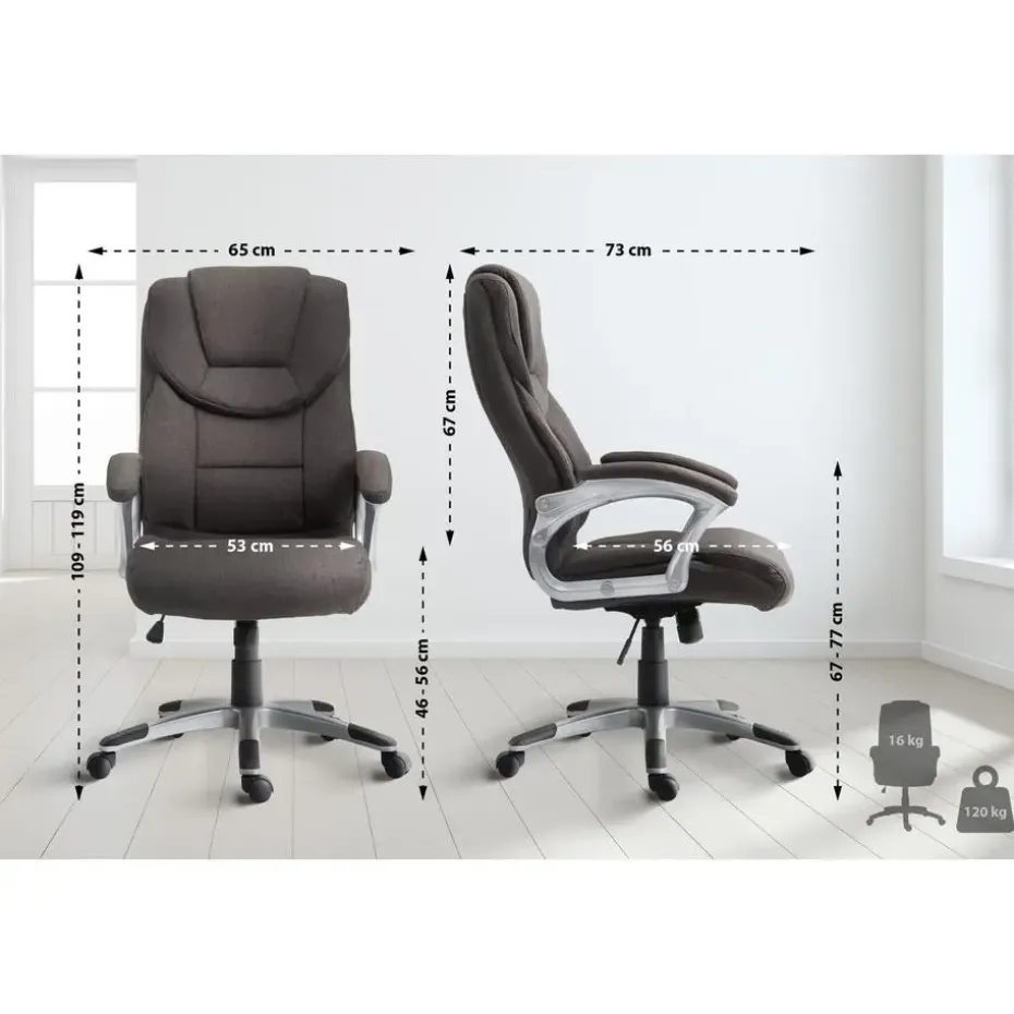 Bureaustoel Texas laat niets te wensen over als het gaat om comfort. Met zijn ergonomisch gevormde rugleuning en traploos instelbare zithoogte is een comfortabele zithouding gegarandeerd. Bewegingsvrijheid wordt mogelijk gemaakt door het ingebouwde kantelmechanisme. De hoogwaardige stoffering en de onderhoudsvriendelijke stoffen bekleding overtuigen bovendien door een lange levensduur. De bureaustoel staat stevig op vijf licht lopende wieltjes en een kunststof frame in metaallook.