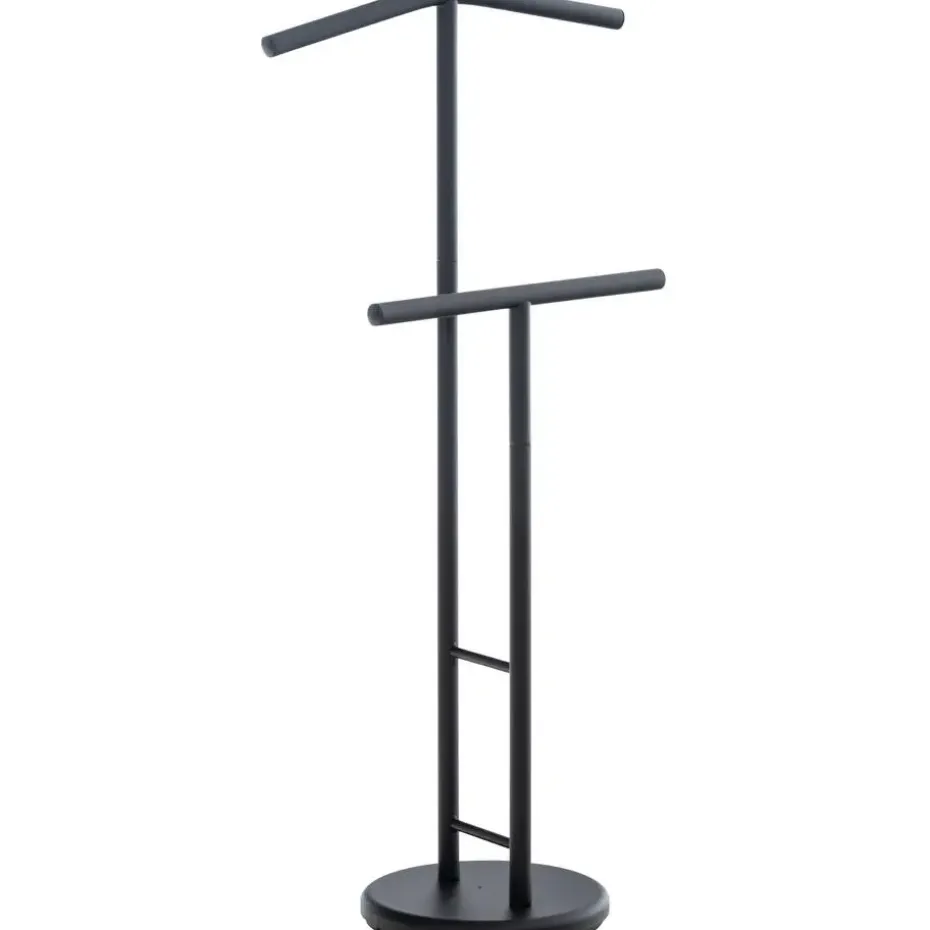 Stijlvol kledingrek in metaal in chroomlook, eenvoudig in zwart of wit. De twee staven bieden voldoende ruimte voor uw kleding. De zware voet zorgt voor extra standvastigheid.
