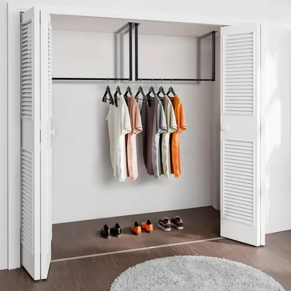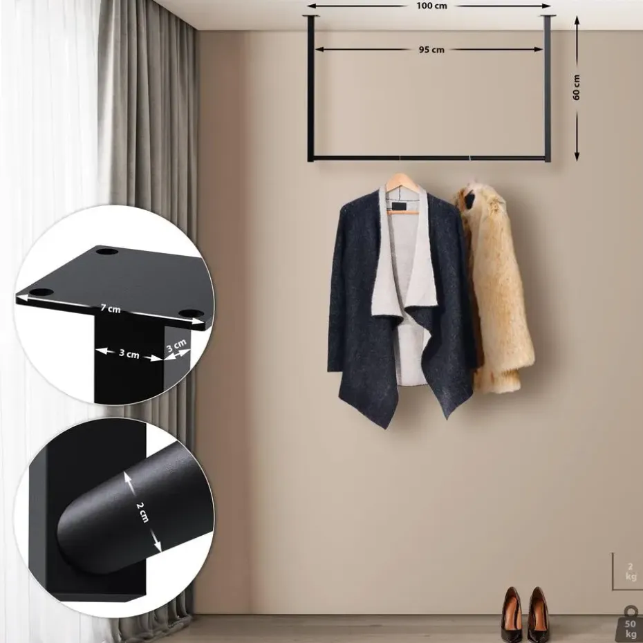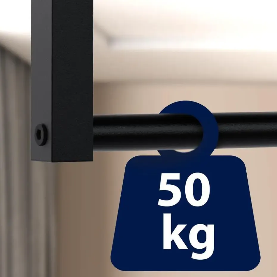 De kledingroede is gemaakt van gepoedercoat staal en is robuust en veerkrachtig, met een draagvermogen tot 50 kilo. De kledingroede is snel en eenvoudig te monteren. Duidelijke montage-instructies en alle benodigde onderdelen worden meegeleverd.