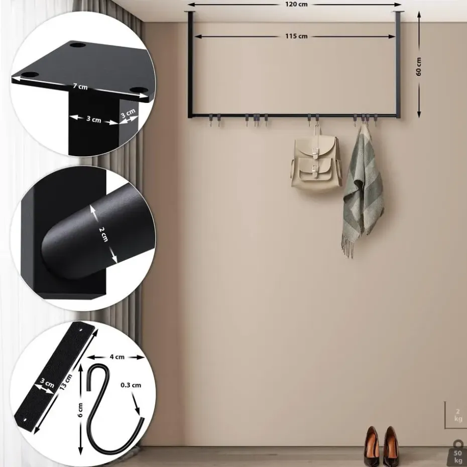 De kledingroede is gemaakt van gepoedercoat staal en is robuust en veerkrachtig, met een draagvermogen tot 50 kilo. De kledingroede is snel en eenvoudig te monteren. Duidelijke montage-instructies en alle benodigde onderdelen worden meegeleverd.