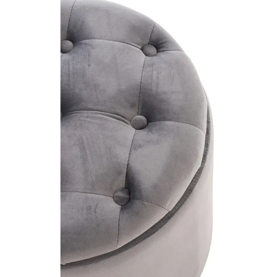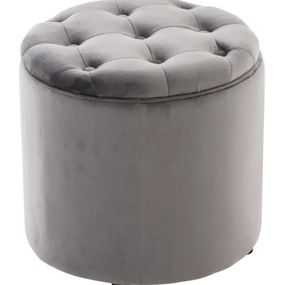 Deze multifunctionele gewatteerde poef met decoratieve knopen is zowel stijlvol als praktisch. Gebruik de kruk als zitplaats of om uw voeten in een ontspannen positie te zetten. Wanneer deze lichte gestoffeerde poef niet wordt gebruikt, kan hij snel worden verplaatst of opgeborgen. Dankzij de bekleding kan hij op elk moment comfortabel zitten. De vloerbeschermers onder de kruk voorkomen dat er krassen op de vloer komen.