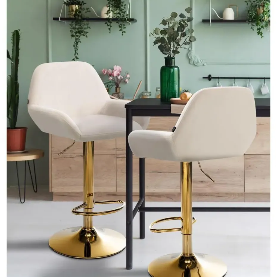 De Braga barkruk is een moderne kruk met een robuust metalen frame in een goudkleurige look. De zitting en rugleuning zijn bekleed met een slijtvaste fluwelen hoes en bieden een hoog zitcomfort dankzij de bekleding.