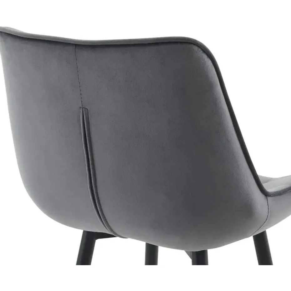 De barkruk dankt zijn chique uiterlijk aan de combinatie van een matzwart frame en modieuze bekleding. De barkruk wordt geleverd met een gewatteerde stoffen of fluwelen bekleding naar keuze