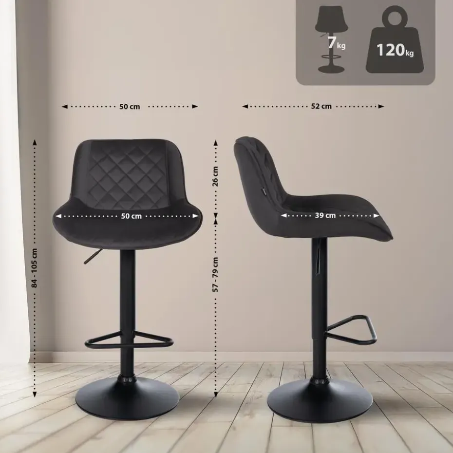 Dankzij de in hoogte verstelbare functie van 57 cm tot 79 cm kunt u de kruk individueel aanpassen voor comfort in elke situatie. De geïntegreerde voetensteun en gewatteerde zitting maximaliseren de zitervaring en nodigen uit om te blijven zitten. De draaibare functie van de barkrukken bevordert bewegingsvrijheid en interactie.