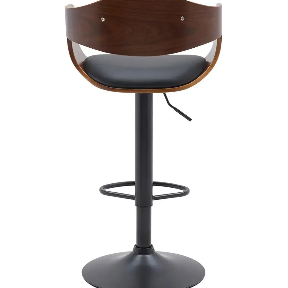 De barkrukken staan ??op robuuste frames van matzwart metaal. Dankzij een gaslift zijn de barkrukken traploos in hoogte verstelbaar en kunnen ze individueel worden aangepast aan elke lichaamsgrootte en baarhoogte. De geïntegreerde voetsteunen dragen bij aan een rechte en opgerichte zithouding.