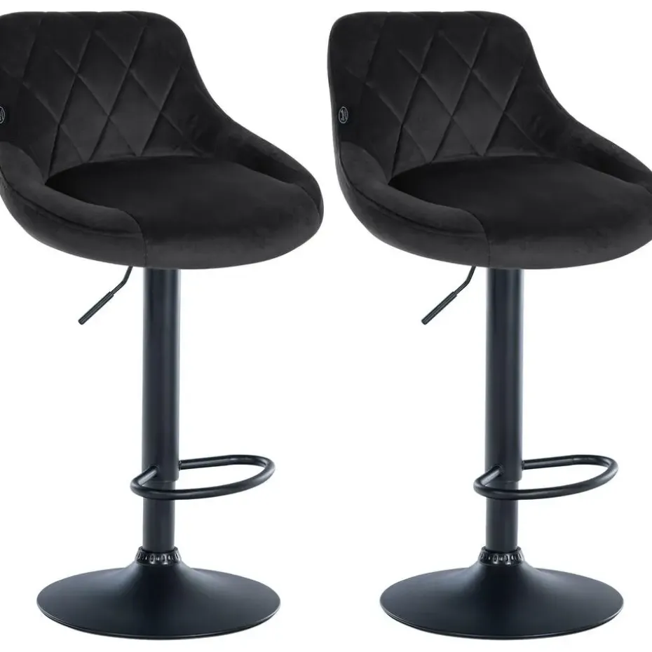 Deze krukken maken indruk met hun stijlvolle ontwerp. De zitting is bekleed met fluwelen stof en afgewerkt met gedetailleerde siernaden. Met behulp van de gaslift kan dit model traploos op de gewenste hoogte worden ingesteld, zodat het ideaal past bij elke baliehoogte. De voetsteun, die voor een uitstekend zitcomfort zorgt, kan synchroon met de hoogte van de zitting worden versteld. De zitting kan samen met de voetsteun 360° worden gedraaid. Het frame is gemaakt van metaal en onder de trompetvoet zitten vloerbeschermers om krassen op de vloer te voorkomen.