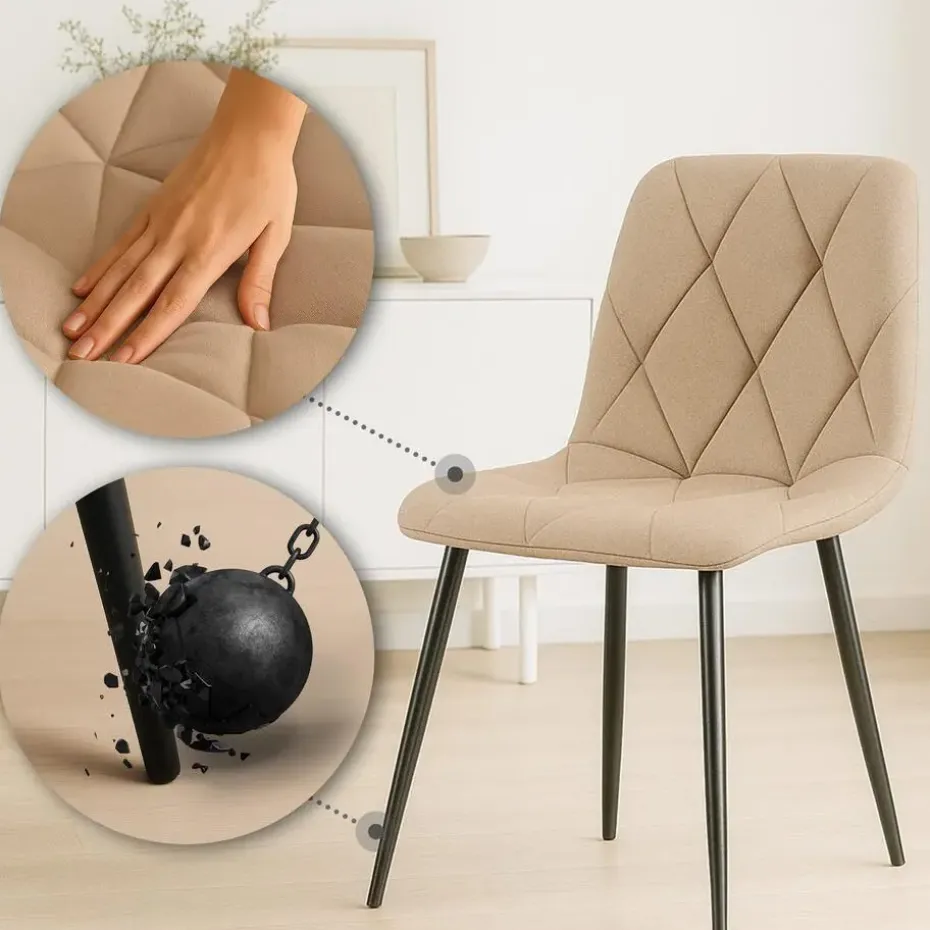 De comfortabele bekleding over de zitting en rugleuning is cruciaal voor een comfortabele zit. Zowel de zitschaal als de rugleuning zijn volledig bekleed met een gemakkelijk te onderhouden fluwelen hoes. Het chique doorgestikte patroon zorgt voor een opvallend effect.