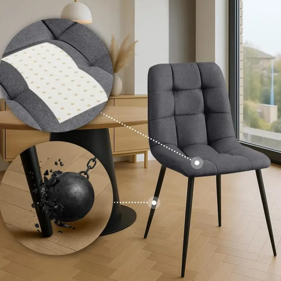 Deze set van vier Antibes eetkamerstoelen combineert een hoog zitcomfort met een moderne en tijdloze uitstraling. Deze gestoffeerde stoelen zijn een geweldige keuze voor de eetkamertafel, keuken en woonkamer, maar ook voor andere doeleinden.
