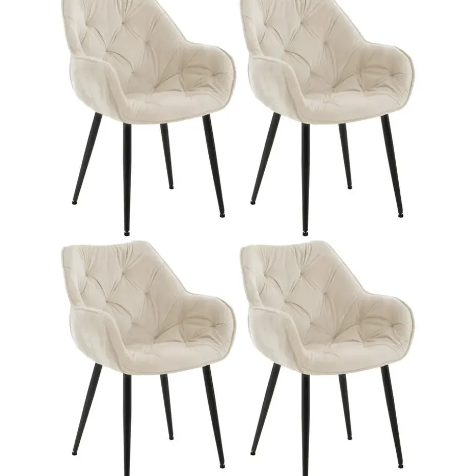 Met de Set van 4 eetkamerstoelen Tanna komen stijlbewustzijn en zitcomfort samen. De fauteuilvormige stoelen overtuigen niet alleen door hun moderne uiterlijk, maar ook door hun hoge comfort, dat wordt geboden door verhoogde armleuningen en gecapitonneerde rugleuningen. Dankzij de onderhoudsvriendelijke materialen kan elke eetkamerstoel snel en gemakkelijk worden schoongemaakt. Een modern onderstel van metaal geeft de set stabiliteit. Er zitten vloerbeschermers onder de poten, die krassen en vlekken op de vloer voorkomen. De moderne set presenteert zich in liefde met stijl in acht kleurvariaties: Blauw, bruin, creme, donkergrijs, grijs, roze, rood of zwart.