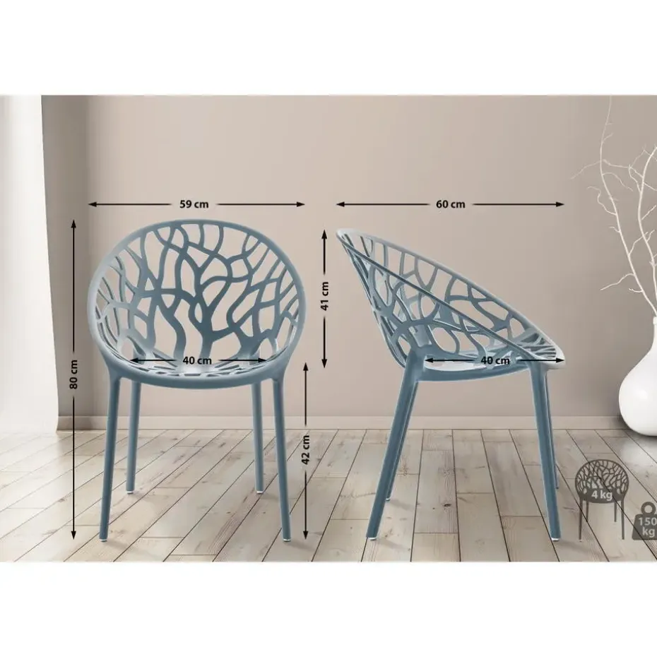 De tuinstoel is gemaakt van robuust kunststof, bestand tegen belastingen tot 150 kg, en combineert functionaliteit met esthetiek. Of het nu op het terras, in de tuin of op het balkon is, de stoel past harmonieus in elke omgeving.