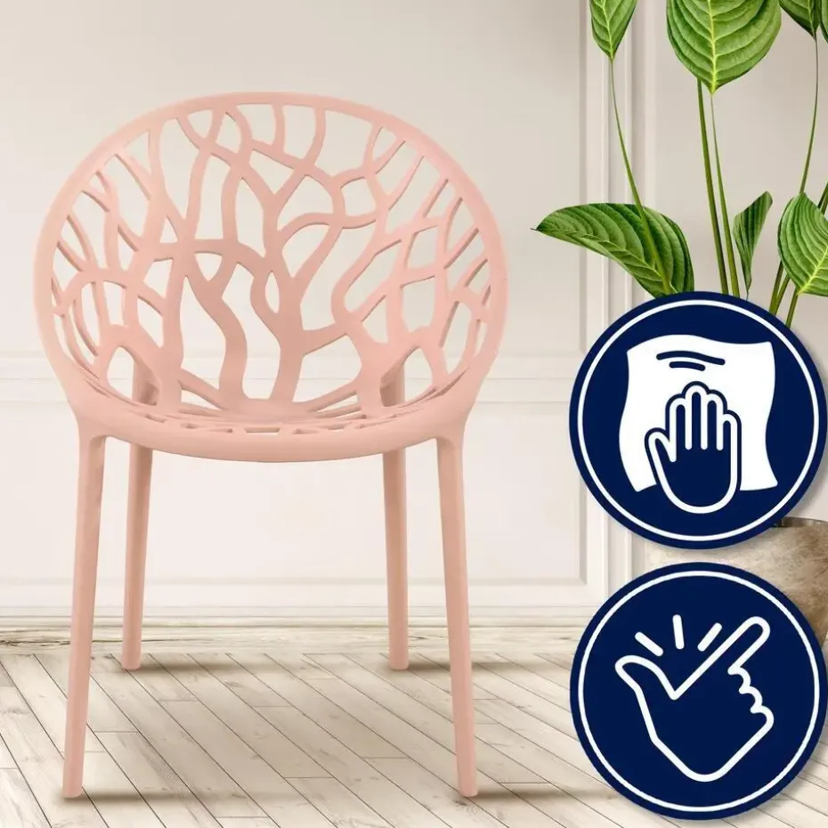 De tuinstoel is gemaakt van robuust kunststof, bestand tegen belastingen tot 150 kg, en combineert functionaliteit met esthetiek. Of het nu op het terras, in de tuin of op het balkon is, de stoel past harmonieus in elke omgeving.