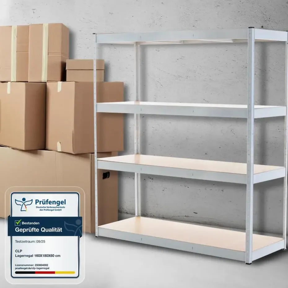 Met een hoogte van 180 cm en een breedte van 160 cm is er veel opbergruimte, of het nu in de kelder, garage, werkkamer of berging is. De plank is voorzien van vloerbeschermers zodat gevoelige vloeren niet beschadigen.