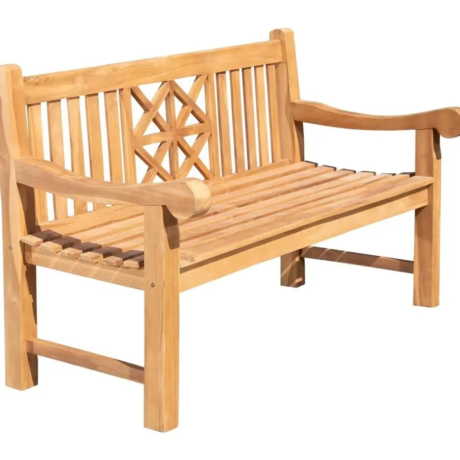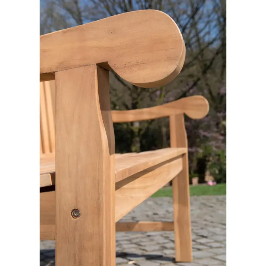 Een stevige bank van massief teakhout hoort gewoon in elke tuin thuis. Met zijn tijdloze lattenontwerp past deze tuinbank perfect overal en kan ook harmonieus worden gecombineerd met bestaand terras- of tuinmeubilair. Het licht gebogen zitvlak, de aangenaam hellende rugleuning en de gebogen armleuningen geven de teakbank ergonomisch zitcomfort. De stevige poten zijn gemaakt van massieve houten balken van 7×7 cm.