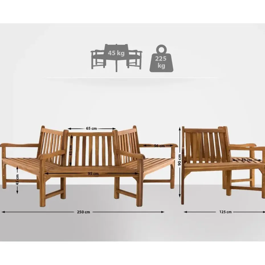 Met deze halfronde boombank kun je altijd comfortabel in de schaduw zitten! De 180 graden bank in een natuurlijke look is een visueel hoogtepunt in elke tuin of voor elk huis. De hoogwaardige afwerking garandeert stabiliteit en een lange levensduur. Deze prachtige bank is gemaakt van eersteklas teakhout, dat bijzonder weerbestendig en duurzaam is. Dit betekent dat hij het hele jaar door bestand is tegen weer en wind. De Kenna halfronde boombank is verkrijgbaar in twee verschillende maten. Zelfs in kleinere voortuinen of tegen een huismuur slaat hij een goed figuur. Haal deze plek van ontspanning in huis.