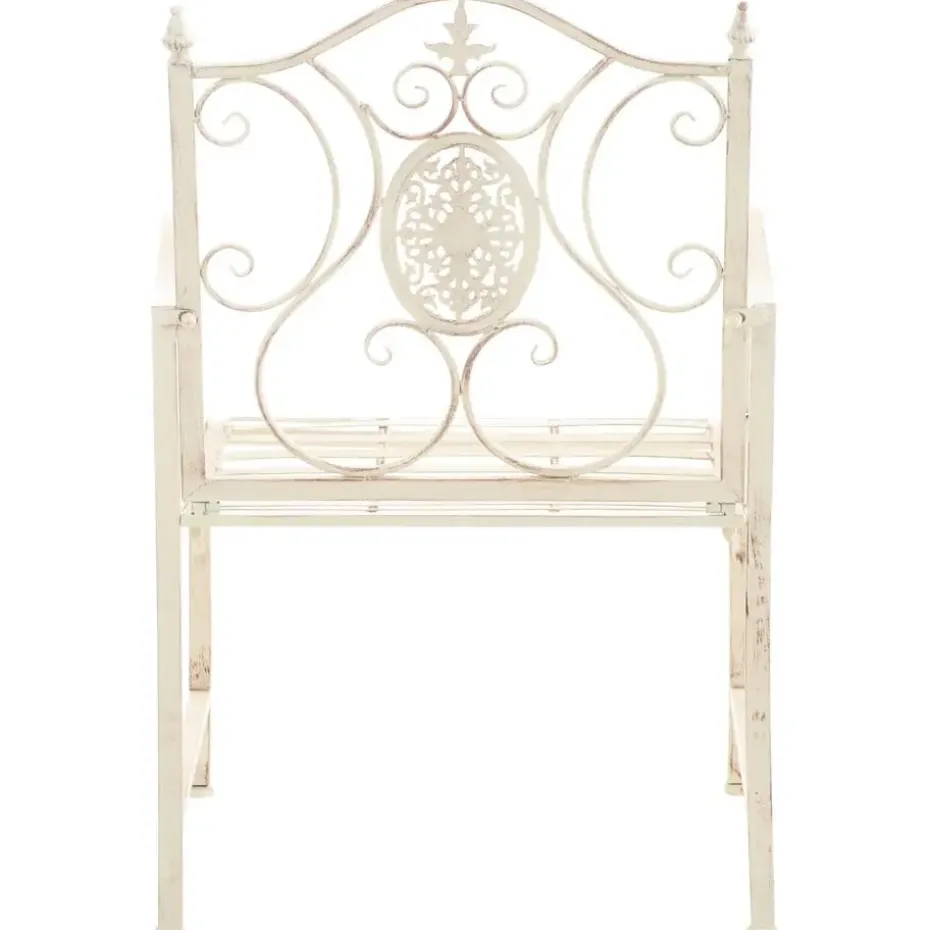 Gemaakt van gelakt ijzer is de tuinstoel beschermd tegen de elementen, waardoor hij weerbestendig is. De ijzeren stoel is gemakkelijk te onderhouden en kan worden schoongemaakt met een vochtige doek en een mild schoonmaakmiddel. Het oppervlak van de tuinstoel is afgewerkt met een mooie patina die past bij de aantrekkelijke decoraties.