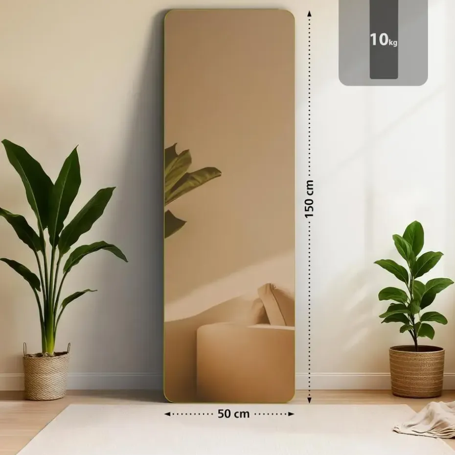 Het frame is gemaakt van robuust metaal en verkrijgbaar in drie uitvoeringen: Zwart Mat, Goud Glans of Wit Mat. Het heldere spiegeloppervlak zorgt voor een schone reflectie en kan helpen om ruimtes groter en lichter te laten lijken.