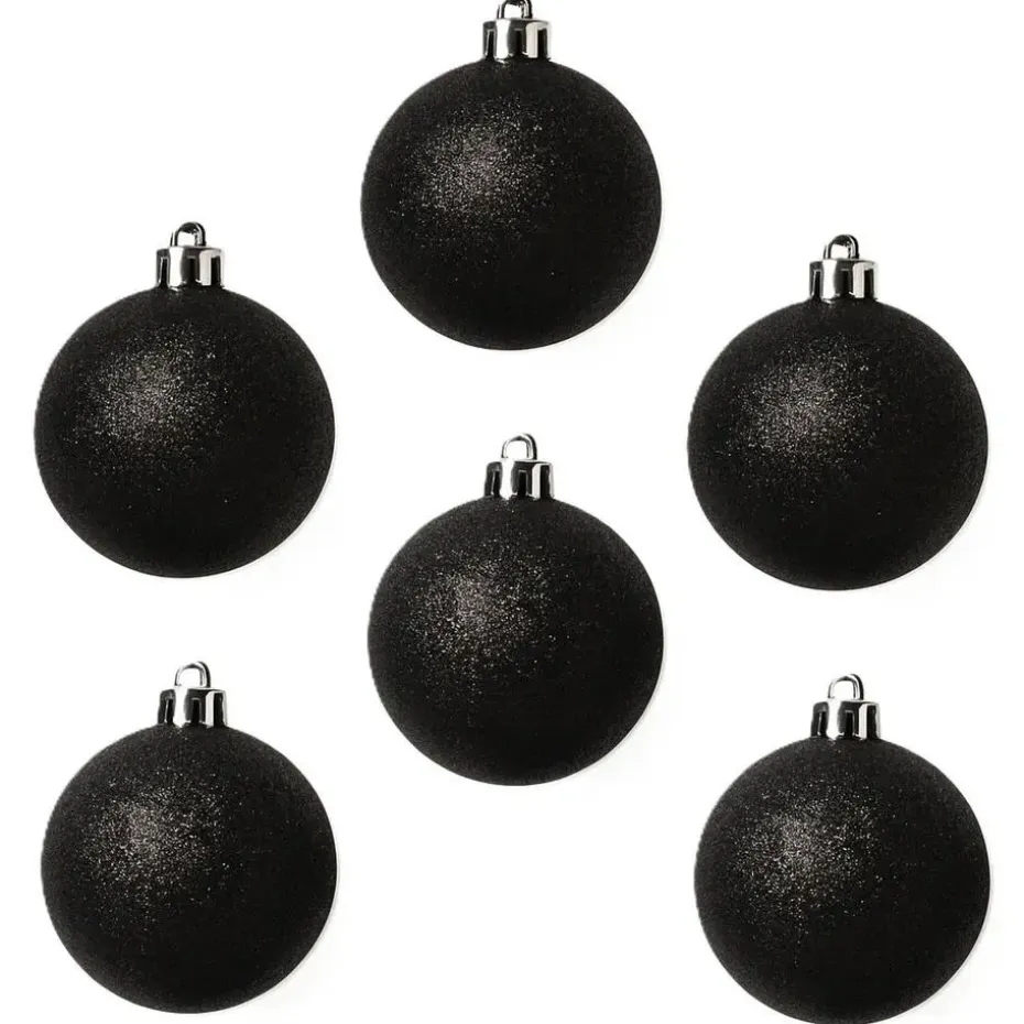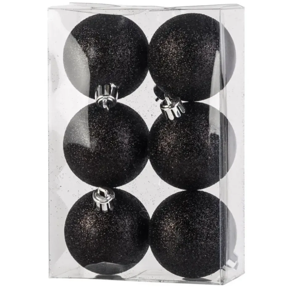 Glitter kerstballen in de kleur zwart. Voeg een vleugje glamour toe aan je kerstboom met deze set van 6x stuks glitter kerstballen. Met een diameter van 6 cm zijn deze onbreekbare kerstballen perfect voor het creeren van een sfeervolle en feestelijke uitstraling. Gemaakt van kunststof, zijn ze lichtgewicht en gemakkelijk te hangen.