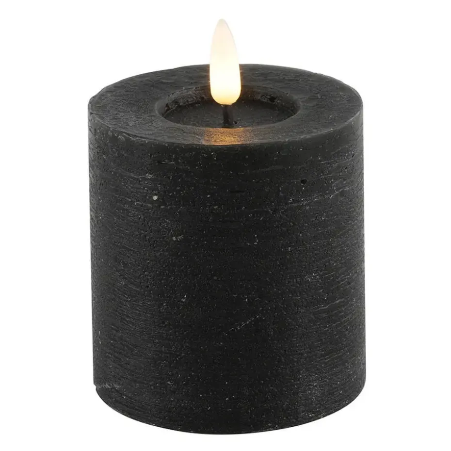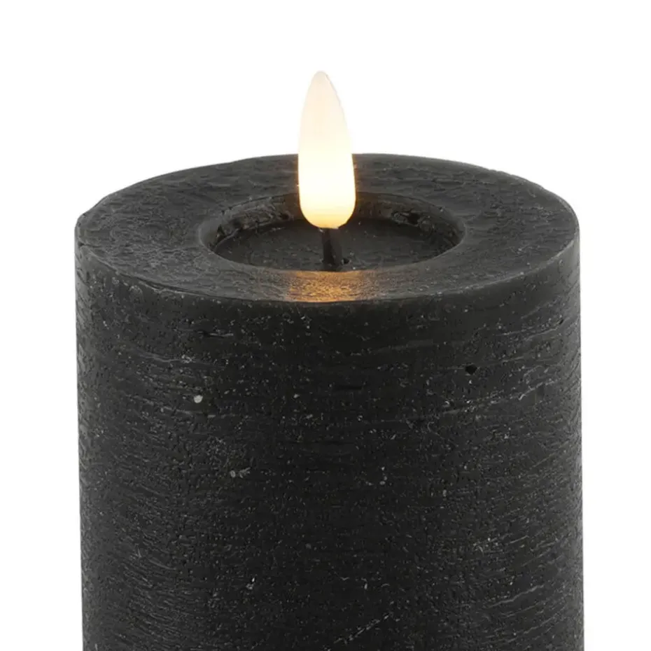 Prachtige LED kaars/stompkaars in de kleur zwart van het merk Countryfield. Deze kaars heeft een formaat van: D7,5 x H8 cm en heeft een timer functie. De kaars geeft een sfeervol warm zwart licht en werkt op 2x AA batterijen (niet inbegrepen).