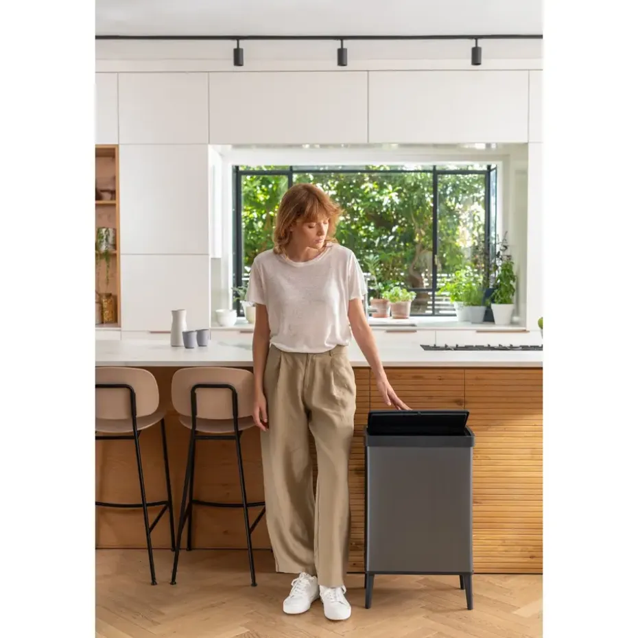 Het praktische touch-deksel opent soepel met één druk, terwijl de omsluitende rand de afvalzak netjes uit het zicht houdt. De antislipvoetjes zorgen voor extra stabiliteit, en dankzij het hoogwaardige kunststof is deze prullenbak roest-, deuk- en vingerafdrukbestendig. Bovendien is hij volledig recyclebaar, gemaakt van 70% gerecycled materiaal en wordt de Verto prullenbak geleverd met een garantie van 5 jaar.