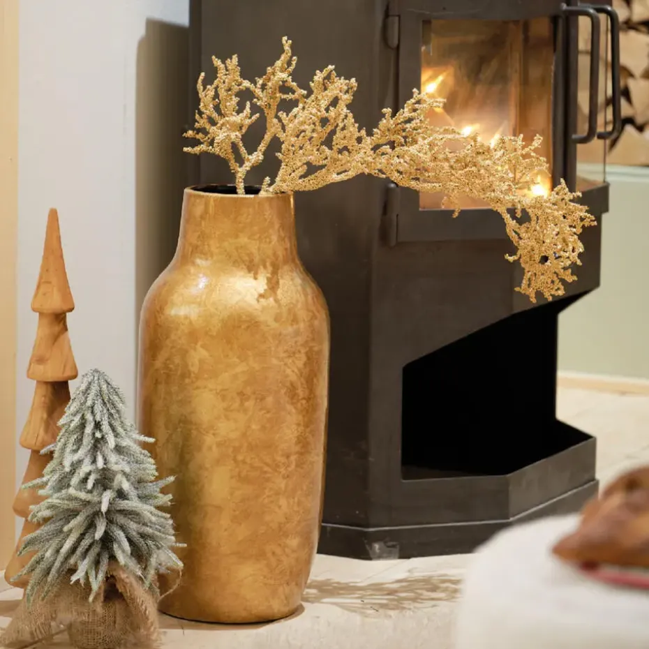Breng stijl en karakter in je interieur met de Decoris Design Terracotta vaas. Deze prachtige bloemenvaas heeft een moderne uitstraling en een elegante gouden tint die moeiteloos past in diverse woonstijlen. De unieke glazuurafwerking zorgt voor een speels en prachtig kleurenspel, waardoor geen enkele vaas exact hetzelfde is. Dit maakt elke vaas een bijzonder decoratief item, of je er nu bloemen in zet of hem als los accentstuk gebruikt. Laat je creativiteit de vrije loop en geef je interieur een eigentijdse touch. Zet de vaas op een dressoir, eettafel of vensterbank en combineer hem met andere vazen voor een speels effect. Of kies juist voor een enkele tak of een bos bloemen om de vaas subtiel te laten opvallen. Dankzij het compacte formaat past hij op vrijwel elke plek in huis.