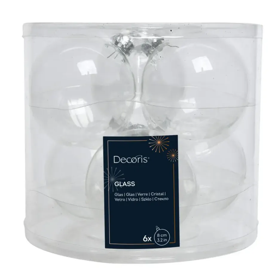 Decoris kerstballen in de kleur transparant parelmoer. Deze set bevat 6x stuks glazen kerstballen in een prachtige kleur met een diameter van 8 cm. De glanzende afwerking zorgt voor een schitterende reflectie van het licht, wat een betoverende sfeer in je kerstboom geeft. Deze kerstballen zijn perfect voor een luxe en verfijnde uitstraling, en zijn gemaakt van glas voor een stijlvolle decoratie. Wij adviseren om kerstbalhaakjes mee te bestellen voor een gemakkelijke ophangervaring.