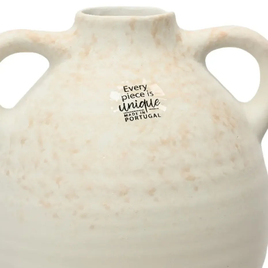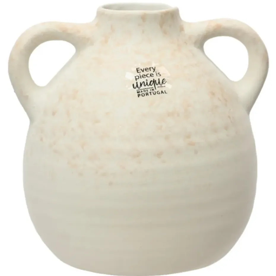 Decoris vaas in vintage kruik model in de kleur wit. Zet de vaas neer met droogbloemen, (kunst)takken of pluimen. Deze eyecatcher voor in huis levert gegarandeerd complimenten op. De vaas is handgemaakt in Portugal. Materiaal: terracotta. Diameter: ca. 17 cm. Hoogte: ca. 17 cm. Tip: als je de kruik voor bloemen wilt gebruiken, zet dan een schotel eronder om eventueel lekken tegen te gaan. De vaas is niet 100% waterdicht.