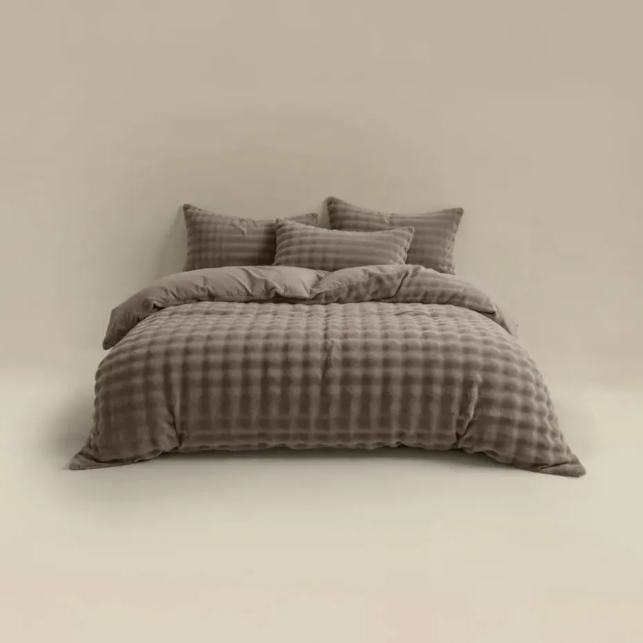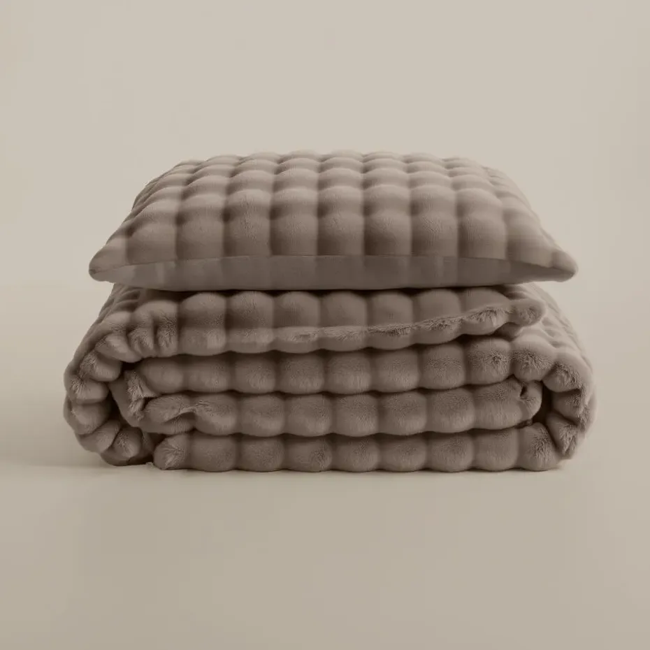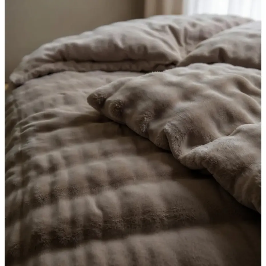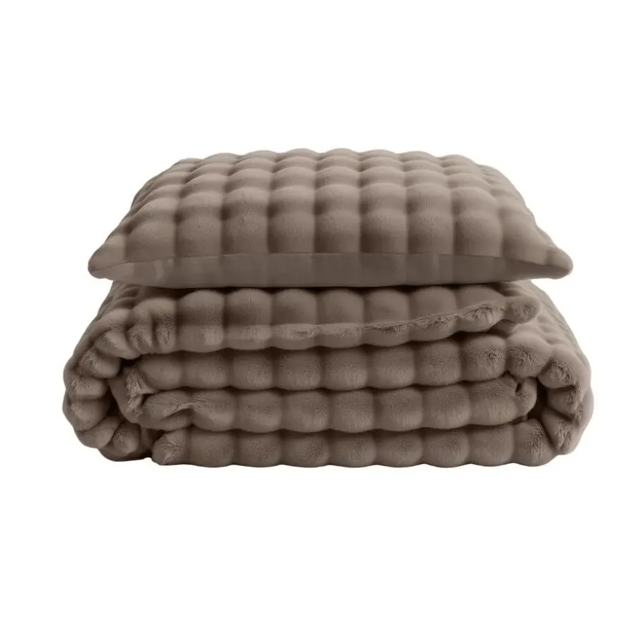 Heerlijk zacht dekbedovertrek van pompom flanel fleece met luxe uitstraling. Warm, ademend, anti-allergisch en strijkvrij – ideaal voor koude nachten en een stijlvolle slaapkamer.