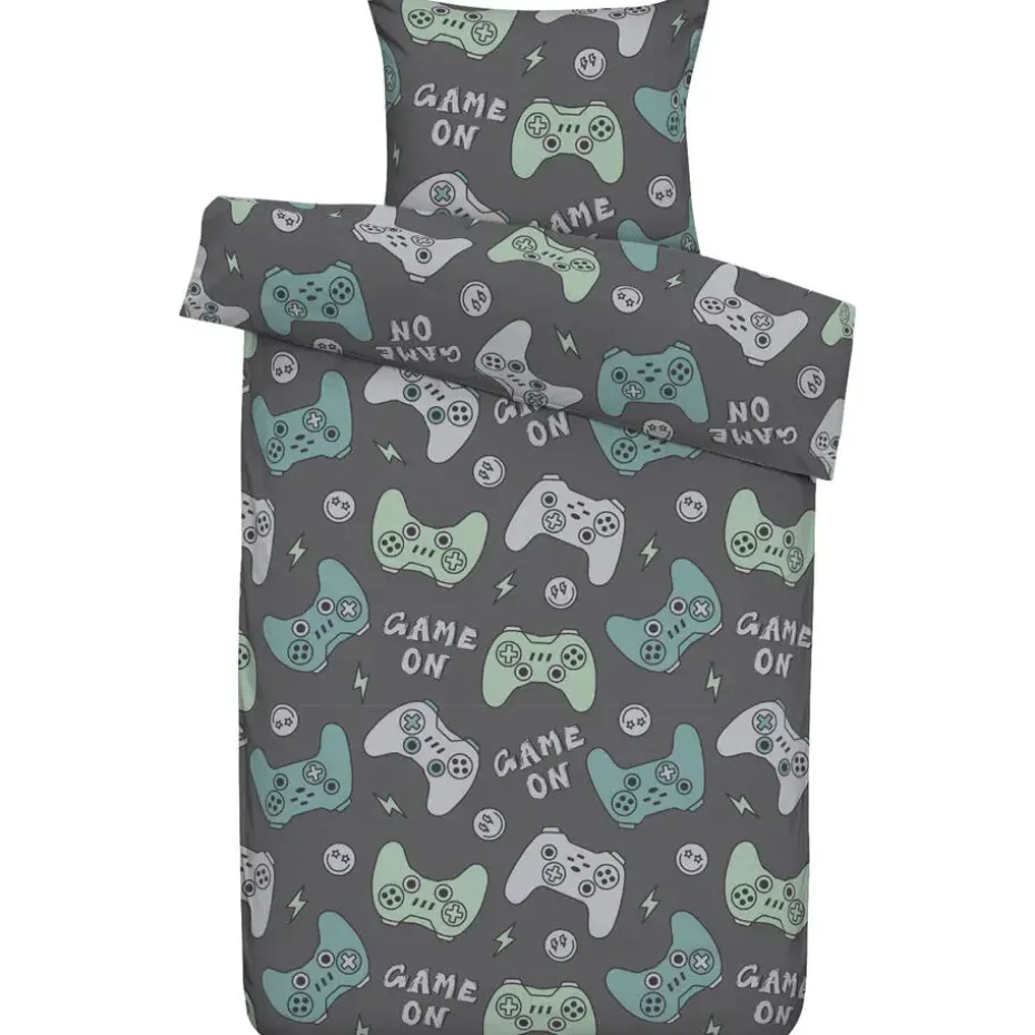 Is jouw kind gek op gamen? Dan is kinderdekbedovertrek Faas een absolute must-have! Dit stoere overtrek in antraciet met groene accenten heeft een coole gameprint met consoles, perfect voor elke jonge gamefan.