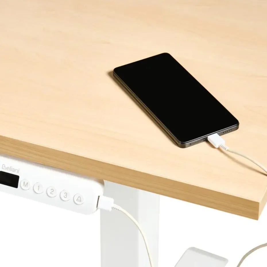 Belangrijkste eigenschappen: Elektrisch in hoogte verstelbaar, Tafelmodel programmeerbaar in 3 verschillende hoogtes, Zachte hoogteverstelling en soepele motoriek dankzij de dubbele motor, Dik tafelblad met hoogwaardige melamine-coating, Hoog draagvermogen, Brede poten voor optimale stabiliteit, USB Oplaadpunt, Anti-botsingssensor voorkomt stoten tegen objecten