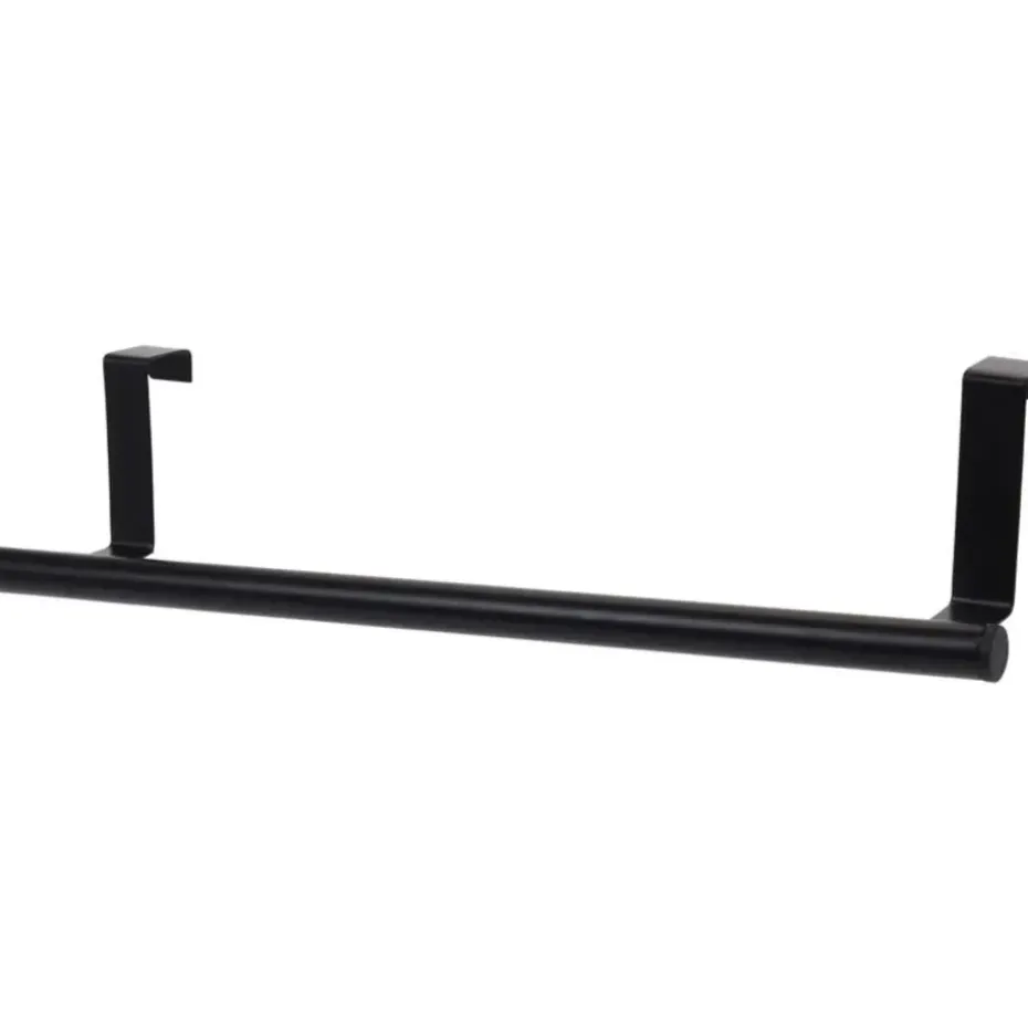 Theedoek / handdoek rek voor bijvoorbeeld over een kastdeurtje. Formaat: ca. 37 x 6 x 8 cm. Materiaal: metaal.