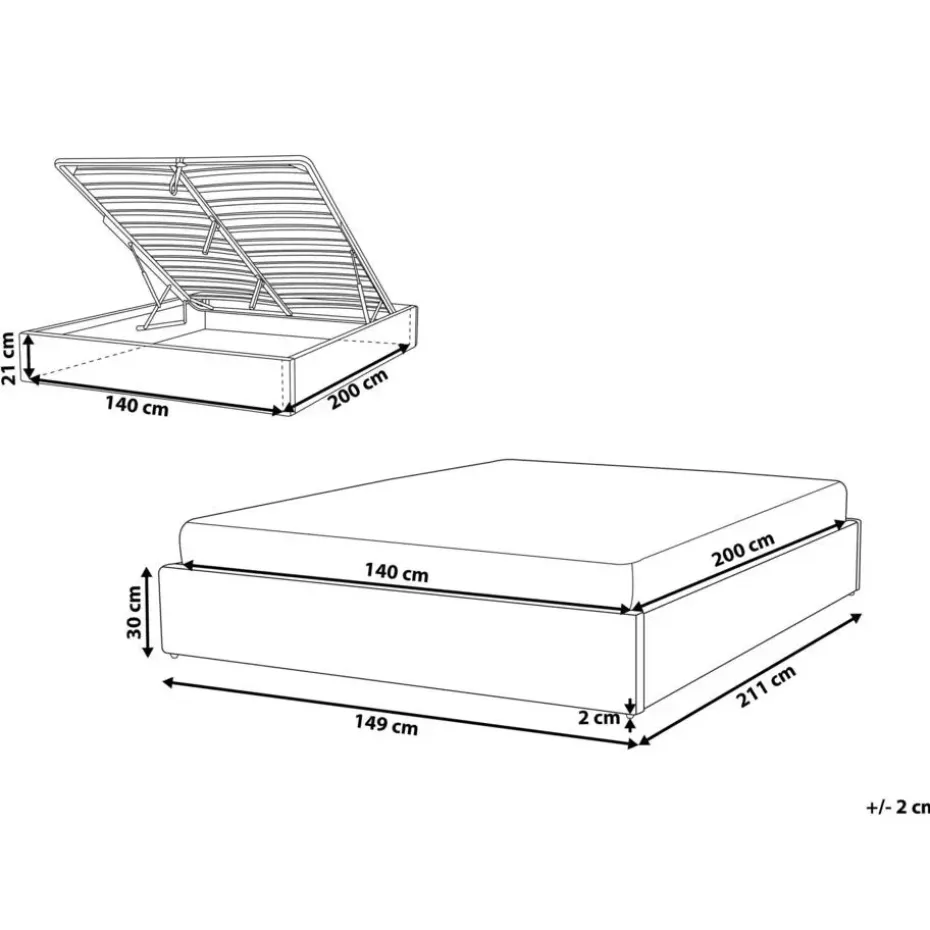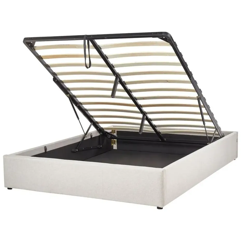 Aanbod omvat: 1 x Bedframe met opbergruimte, 1 x Lattenbodem (24 gebogen latten), Niet inbegrepen: Matras, beddengoed en kussens