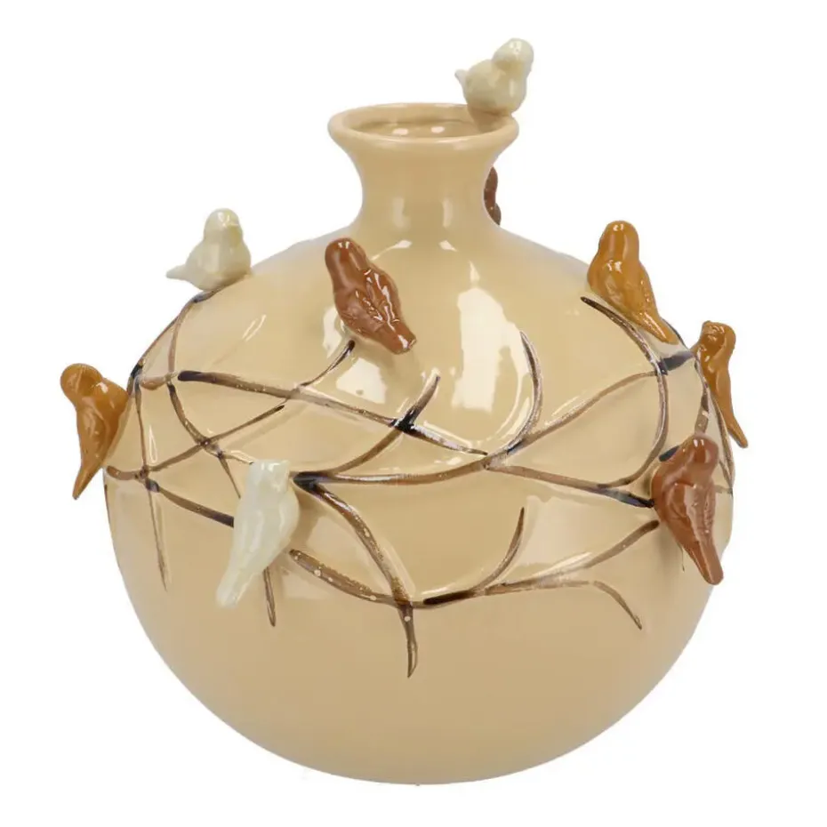 Breng een vleugje lente in huis met deze charmante vaas uit de Spring Birds-collectie. De bloemenvaas is uitgevoerd in een frisse kleur zandkleurig en heeft een subtiel, speels design met vrolijk gekleurde vogeltjes erop. Gemaakt van hoogwaardig keramiek en een echte eyecatcher in ieder interieur.