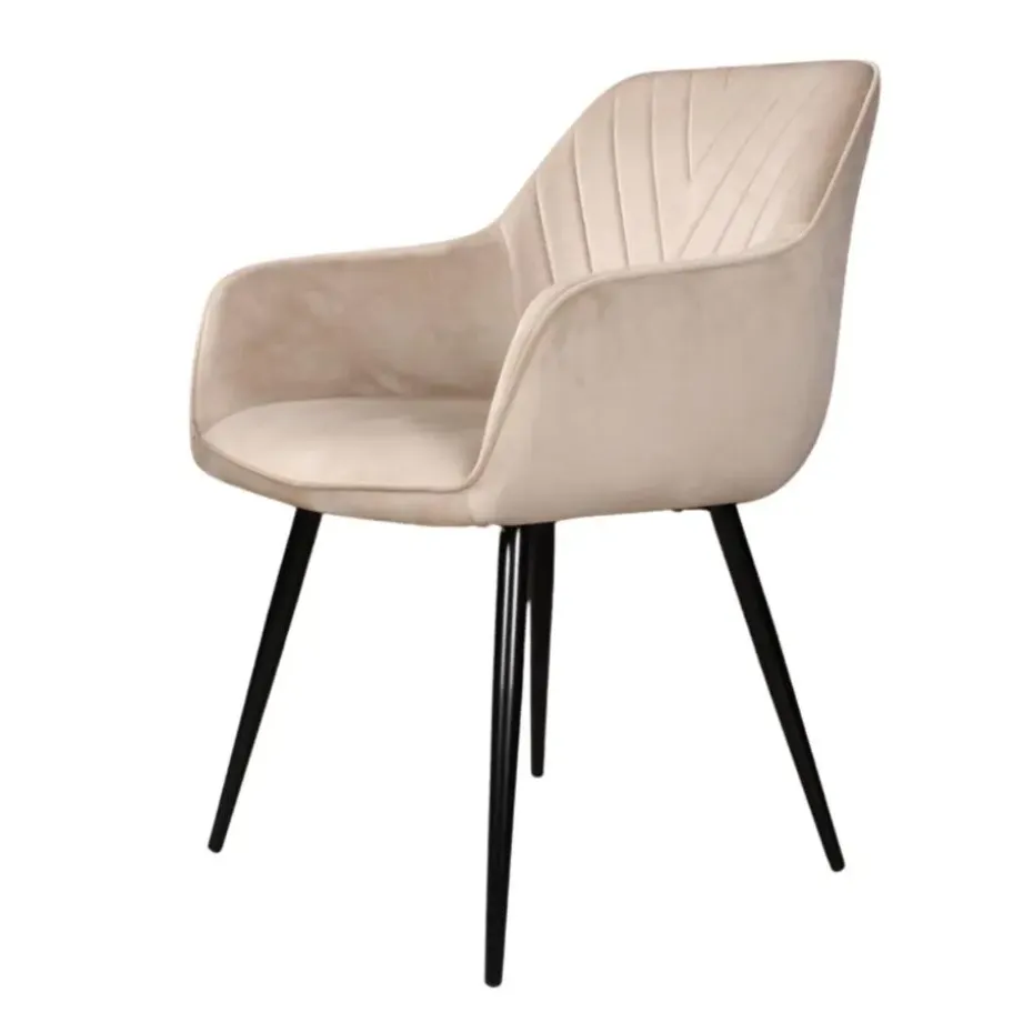 Dankzij de armleuning en het zachte zitvlak kan er heerlijk lang op deze armstoel gezeten worden. Opvallend aan zijn ontwerp zijn de visgraat sierstiksels over de binnenzijde van de rugleuning voor een speelse finishing touch. Om dit exemplaar compleet te maken is hij voorzien van vier stevige zwarte metalen poten. Plaats armstoel Gaby in uw (woon)keuken, op kantoor of in uw horecagelegenheid.