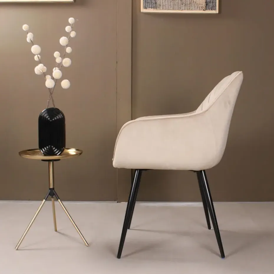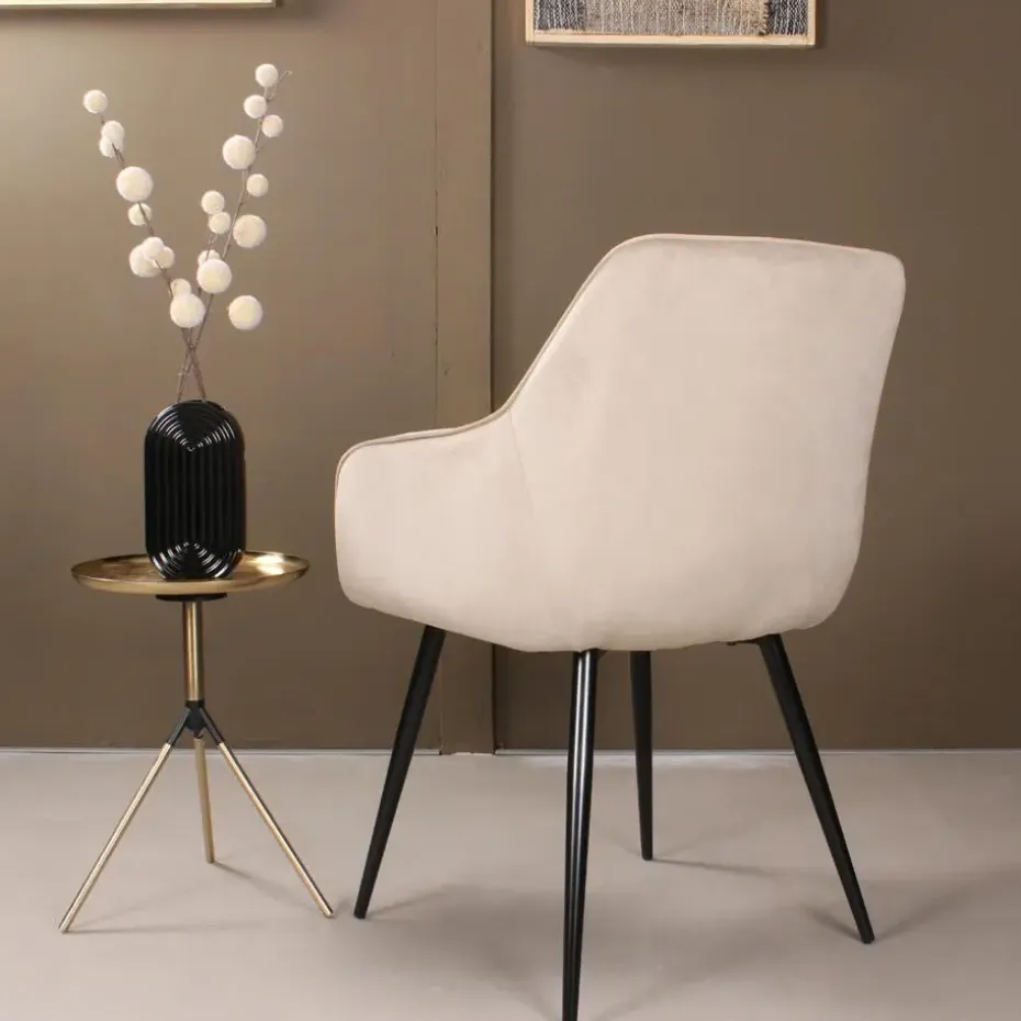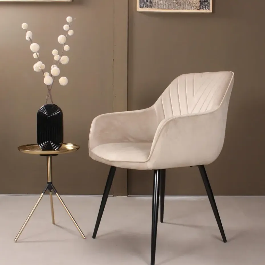 Geef uw interieur een stijlvolle en trendy make-over met armstoel Gaby uit onze eigen collectie! Deze prachtige armstoel is bekleed met een heerlijk zachte velvet stof. Gaby is verkrijgbaar in diverse mooie kleuren; groen, goud, zwart, roze en champagne.