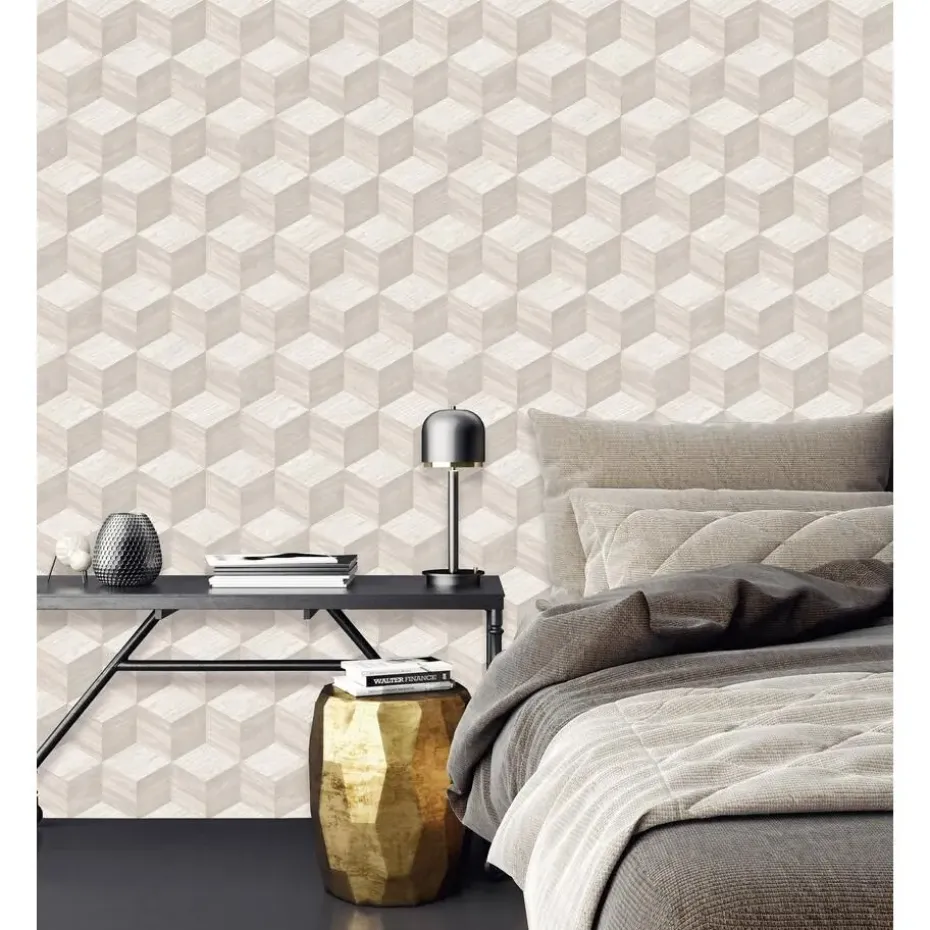 Renaissance Natural Cube Offwhite combineert een tijdloos geometrisch ontwerp met subtiele houtnerftexturen in zachte, Crèmewitte tinten. De 3D-optische kubuspatronen spelen met licht en schaduw, waardoor uw muren diepte en dynamiek krijgen. Gemaakt van krasvast vliesmateriaal, is dit behang eenvoudig te verwerken — lijm direct op de muur, zonder krimp of vervorming. De matte, natuurlijke finish straalt rust uit en past naadloos in zowel moderne als klassieke interieurs. Perfect voor een accentmuur in woonkamer, slaapkamer of kantoor, waar u een verfijnde, eigentijdse sfeer wilt creëren.