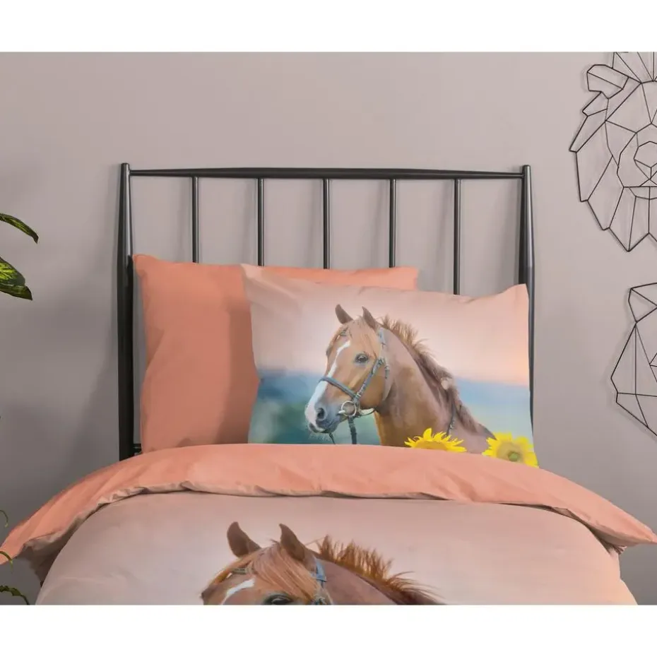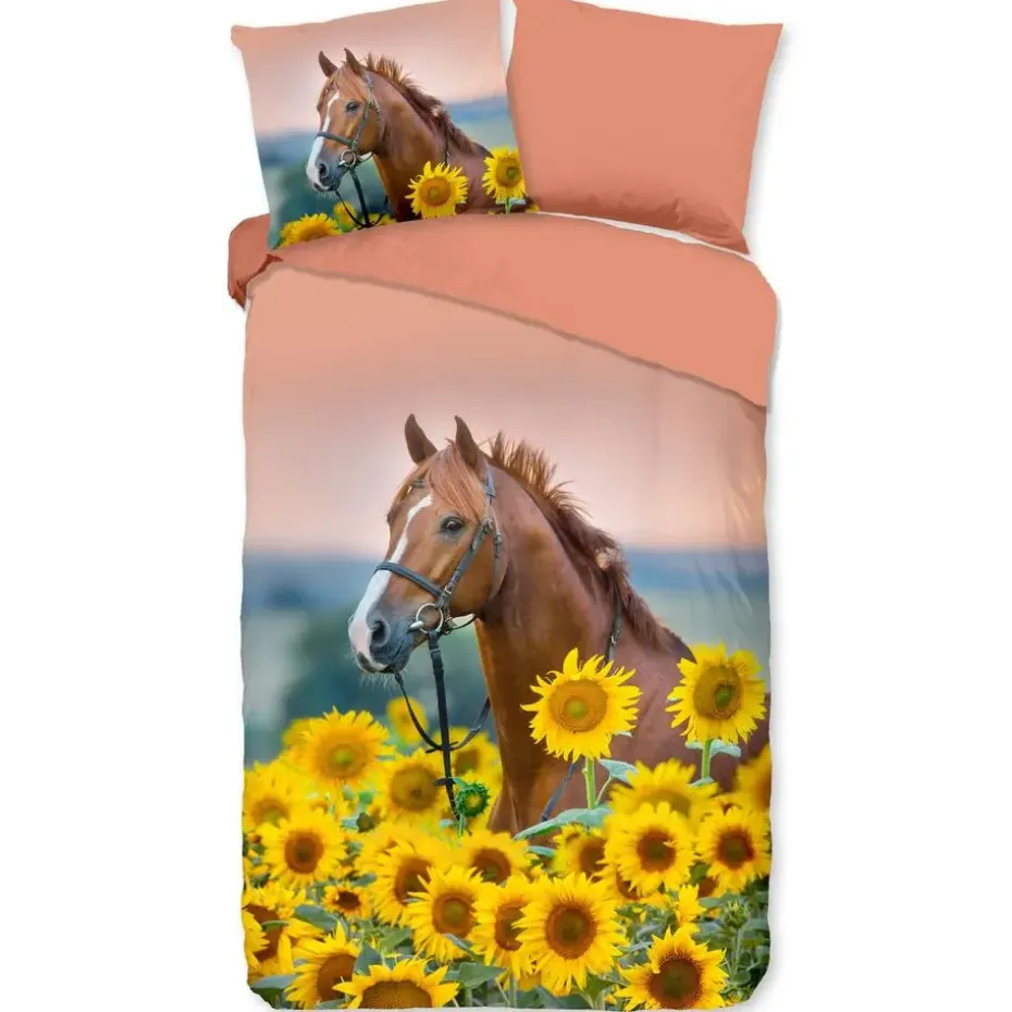 Kinderdekbedovertrek Beauty van Good Morning in de kleur multi, met een print van paard met zonnebloemen. Het dekbedovertrek is gemaakt van 100% katoen. Deze kwaliteit is ademend, vochtabsorberend en voelt zacht en soepel aan. Dit leuke kinderdekbedovertrek is een leuke toevoeging aan iedere kinderkamer. Het kinderdekbedovertrek is geschikt voor ieder jaargetijde. Het katoenen 100% katoen is heerlijk koel in de zomer en geeft warmte in de winter.