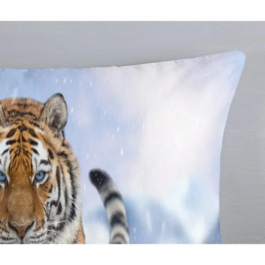 Flanellen dekbedovertrek Zelda van Good Morning, in de kleur multi, met een print van tijger in de sneeuw. Het dekbedovertrek is gemaakt van 100% katoen/flanel dat is licht geruwd, waardoor een fluweelzacht laagje ontstaat dat heerlijk warm aanvoelt -perfect voor koude nachten.