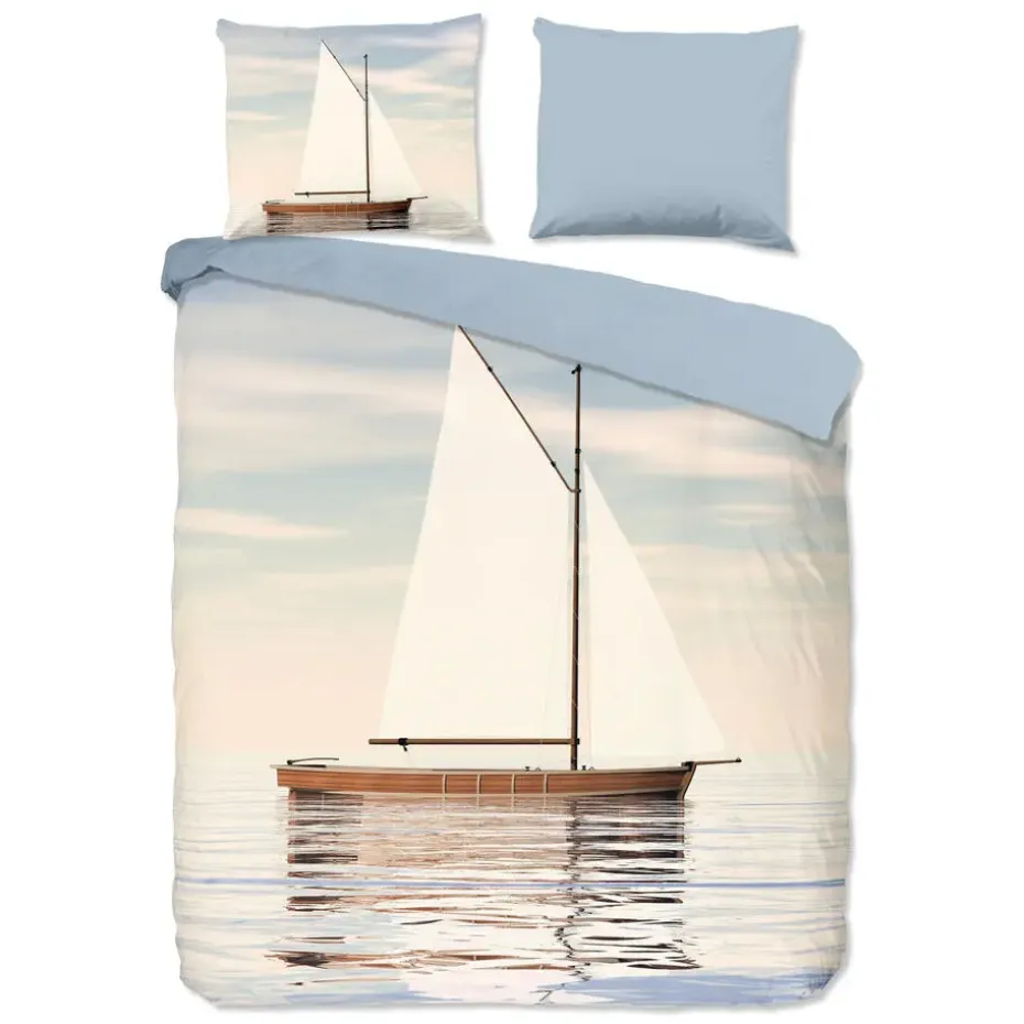 Dekbedovertrek Meri van Good Morning met maritiem/ zeilboot, in de kleur blauw. Dit is gemaakt van 100% katoen. De kwaliteit is ademend, vochtabsorberend en voelt zacht en soepel aan. Dit mooie dekbedovertrek fleurt iedere slaapkamer op en is geschikt voor elk jaargetijde. Het katoenen dekbedovertrek is heerlijk koel in de zomer en geeft warmte in de winter.