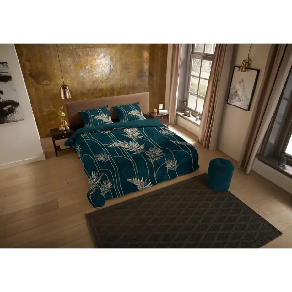 Dekbedovertrek Malak van Pure met gouden bladeren, in de kleur groen is gemaakt van 100% polyester -microfiber. Deze stof valt soepel om je heen en is licht van gewicht, wat het comfortabel maakt voor elk seizoen.