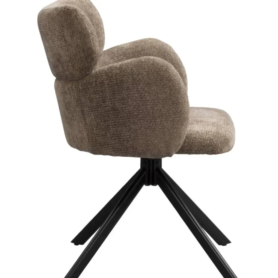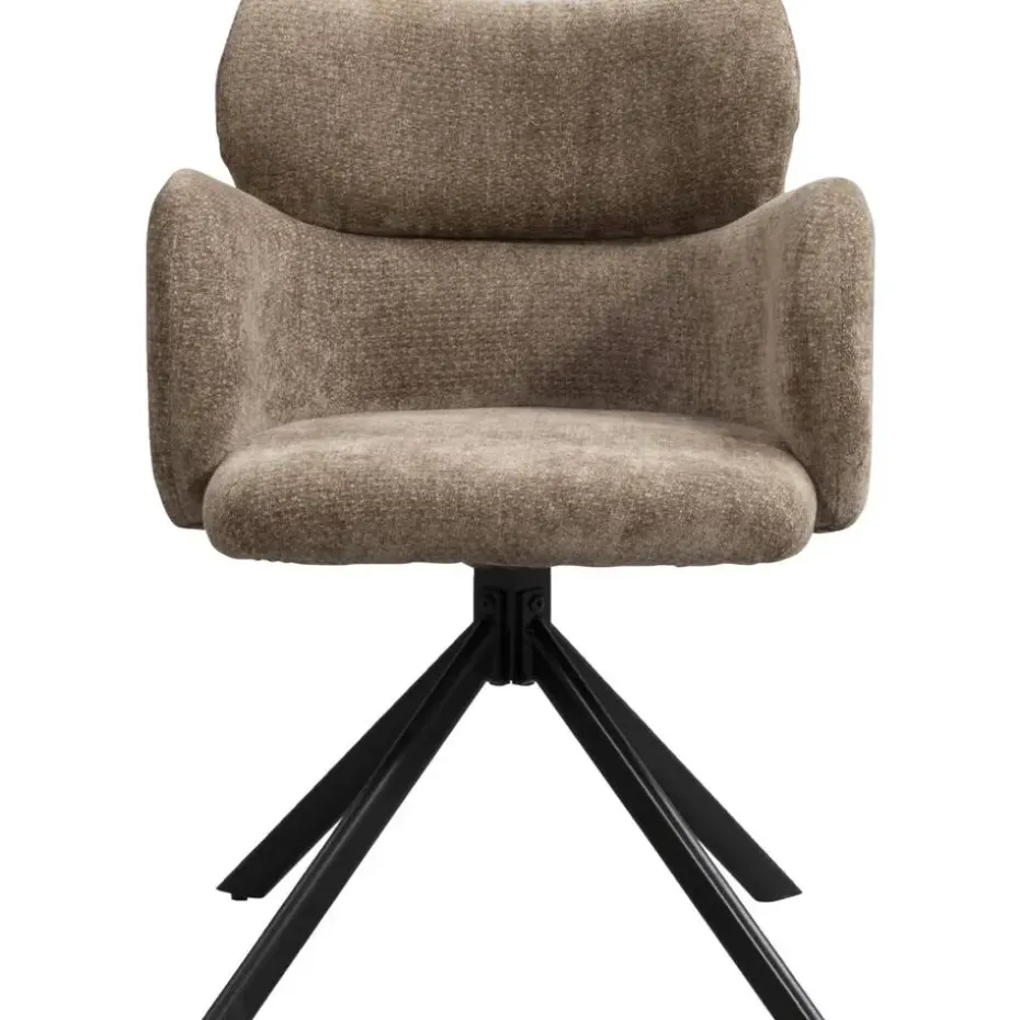 Eetkamerstoel Coco is bekleed met een zachte, taupekleurige stof. Deze eetkamerstoel maakt elk eetmoment relaxed. De zachte bekleding en armleuningen zorgen voor een comfortabele zit, terwijl de 180 graden draaibare zitting met terugdraaifunctie het leven nét even een stukje makkelijker maakt.