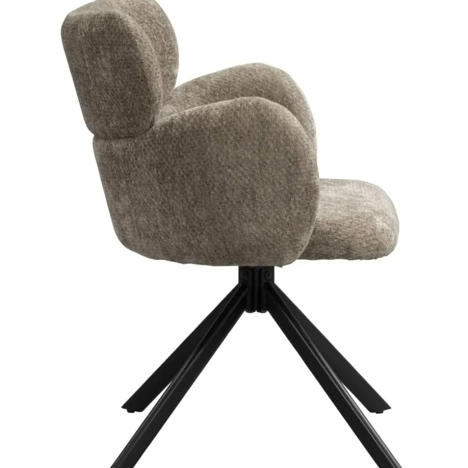 Eetkamerstoel Coco is bekleed met een zachte, vergrijsd groenkleurige stof. Deze eetkamerstoel maakt elk eetmoment relaxed. De zachte bekleding en armleuningen zorgen voor een comfortabele zit, terwijl de 180 graden draaibare zitting met terugdraaifunctie het leven nét even een stukje makkelijker maakt.